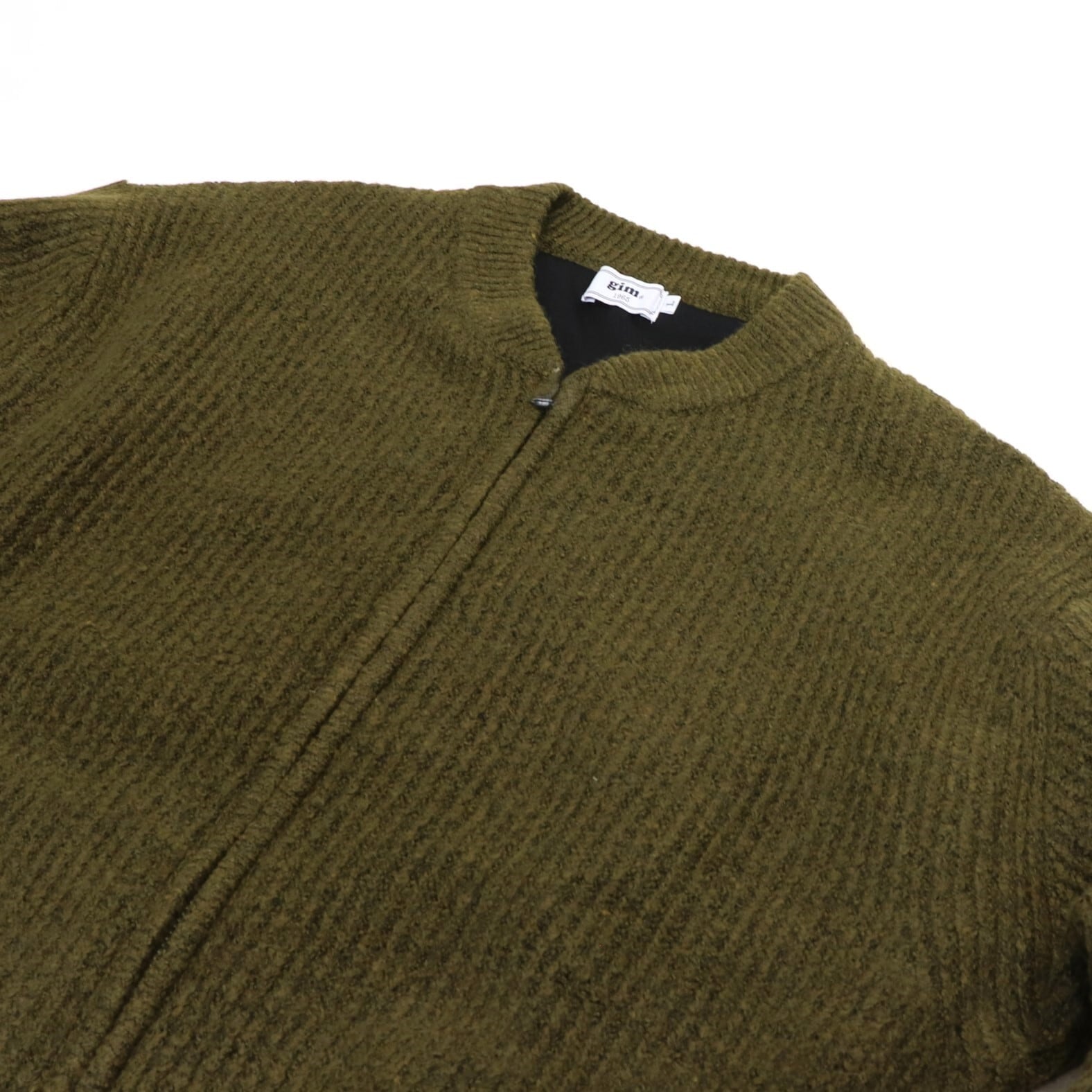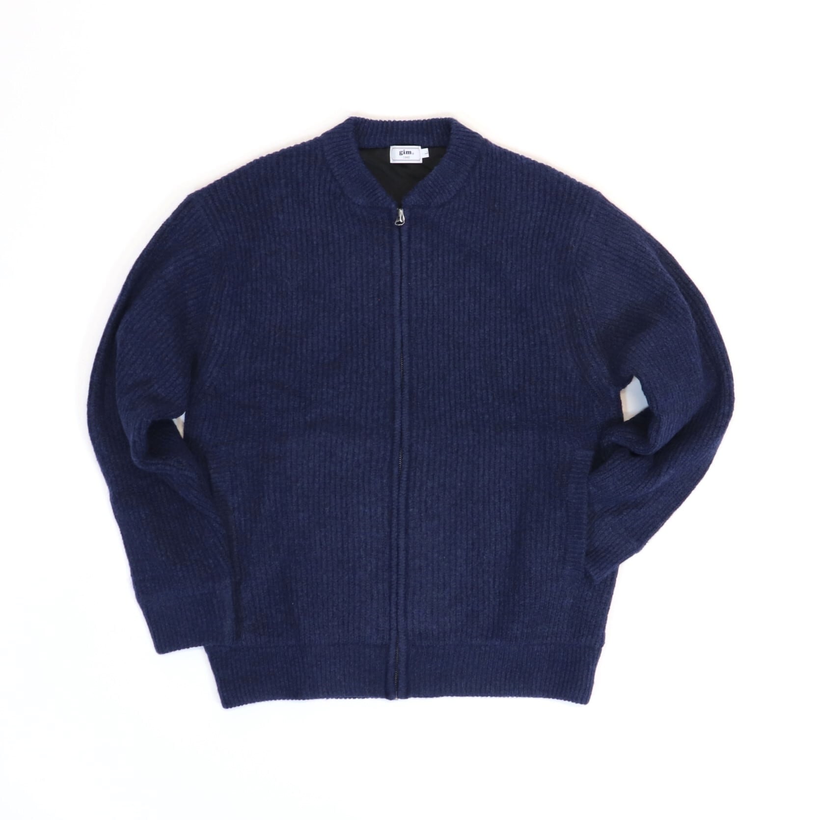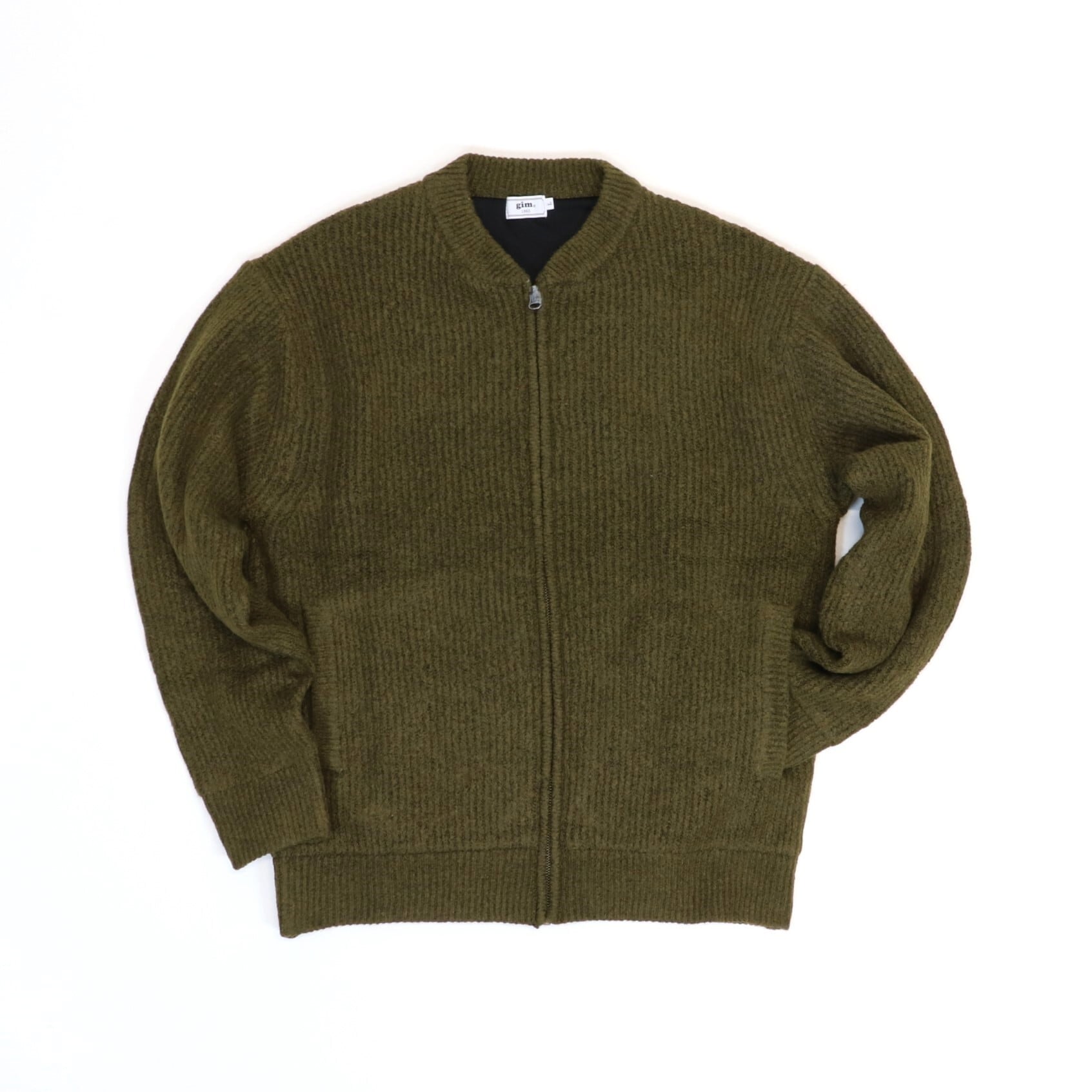 ウール混で温かみがあり、全体的にボリューム感のあるフルジップカーディガン。